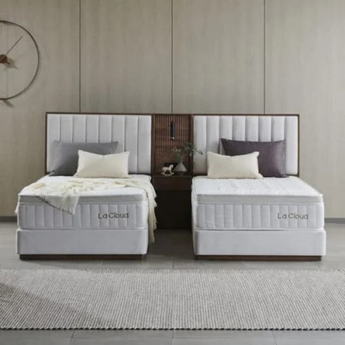 [라클라우드] 시에스타 호텔식 침대 프레임+매트리스+패널 세트 _ 트윈 (브라운/오크)